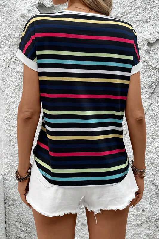 Textured Hollow Grommet Placket Split Neck Short Sleeve Top