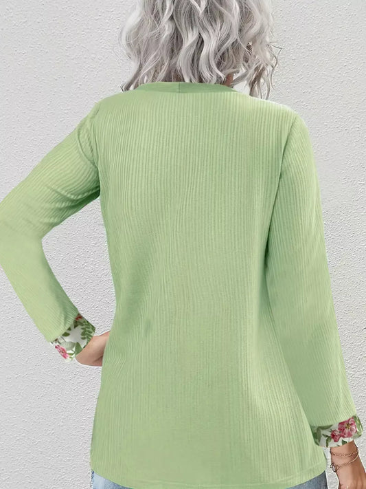 Ribbed Knit Splicing Contrast Long Sleeve Blouse